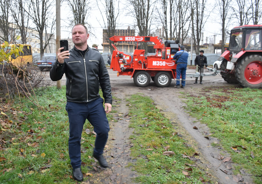 Сегодня же на новую детскую площадку между домами на Cахзаводе завозят оборудование, сходу начиная монтаж. Потом все там быстро «резинкой» затянуть нужно, чтоб к концу года и каникулам успеть. На Шевченко, возле школы, через дробилку весь спил пропускаем.