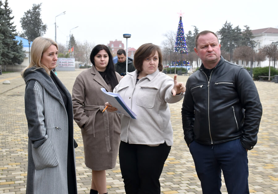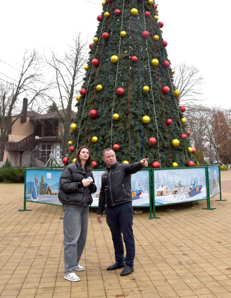 Следующим пунктом контрольной поездки тимашевского главы стал городской парк, где уже тоже установлена большая новогодняя елка. Ближе к полудню тут еще немноголюдно. Панина встречает директор и выслушивает его планы разместить в парке еще одну детскую площадку, но для самых маленьких горожан. И чтобы непременно с песочницей, которая так понравилась карапузам Индустриального.
