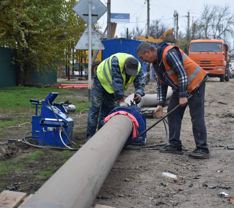 Так, на улице Шевченко вовсю идет процесс так называемой санации большой водопроводной сети, толстые металлические трубы которой были уложены в землю давным-давно, еще в социалистические времена. Понятно, что они находятся на грани выхода из строя. И потому мэрия решила обновить старый трубопровод, запустив прямо внутрь него новую толстостенную трубу. Для этого специалисты ООО «СтройЭнергоКубань» на протяжении 661 метра ведут вскрышные работы, чтобы поэтапно засунуть в металлический «чехол» старой сети новые пластиковые трубы. Это сложно, недешево, но необходимо для безаварийного снабжения водой наших горожан и обойдется казне в 15,8 млн рублей.