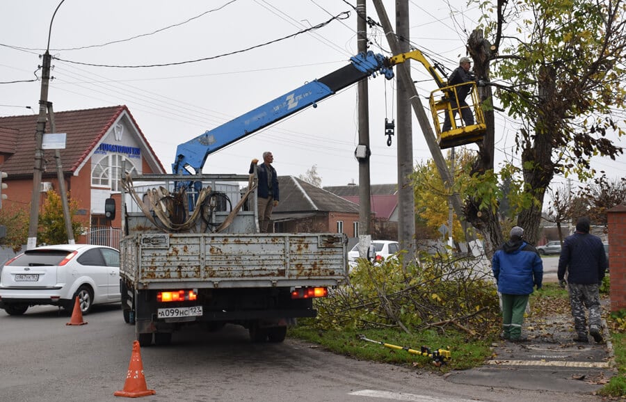 Раз уже зашла речь о субботниках, на которых, сняв служебные костюмы, регулярно вкалывают работники городской администрации, скажем, что спил деревьев ими проходит не только на перекрестках, но и в других местах. Накануне зимы, когда у нас случаются гололедицы, обрушивающие деревья на пути пешеходов и транспорта, работники мэрии по согласованию с нашими энергетиками также стараются заранее обезопасить городские электролинии, убирая от них отжившие свой век растения.