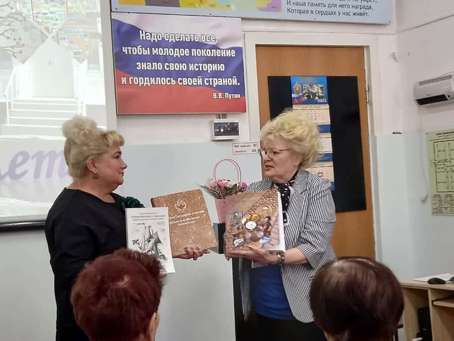 Отдельные слова об участнице праздника Людмиле Николаевне Боженко, поэтессе Донецкой Народной Республики. Она не только помогла пополнить фонды музея «Истоки» военными экспонатами, не только активно участвовала вместе с сегодняшними воспитанниками музея в проведении для присутствующих ознакомительной экскурсии по залу «Мужества и славы», не только привезла и вручила коллективу музея «Истоки» специальные подарки (на снимке), но и к окончанию официальной части юбилея написала, прочла и подарила проникновенные стихи, посвященные музею.