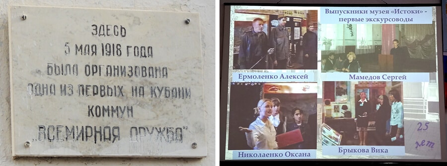 А 25 лет назад музей «начинался» с одного небольшого кабинета. Начинался – «по воле» бывшего директора местной школы, затем Центра детского творчества, руководителя управления образования, первого заместителя главы Тимашевского района Сергея Дмитриевича Тарасова, который сегодня трудится проректором в Кубанском государственном университете. Сергей Дмитриевич тоже участвовал в праздновании 25-летия музея. Характеризуя деятельность музея, он отметил, что многие воспитанники «Истоков» разных выпусков стали руководителями, известными творческими личностями. Коллектив вносит неоценимый вклад не только во всестороннее развитие школьников, но и конкретно – в дело патриотического воспитания нашей молодёжи. А это очень важно. С.Д. Тарасов привёл слова ректора главного вуза Краснодарского края, который на их вузовских планёрках периодически напоминает коллегам: «Нам не нужны грамотные мерзавцы, нам нужны умные, уважающие свои традиции патриоты России»… Вот и музей «Истоки» помогает воспитывать настоящих патриотов своей Родины.