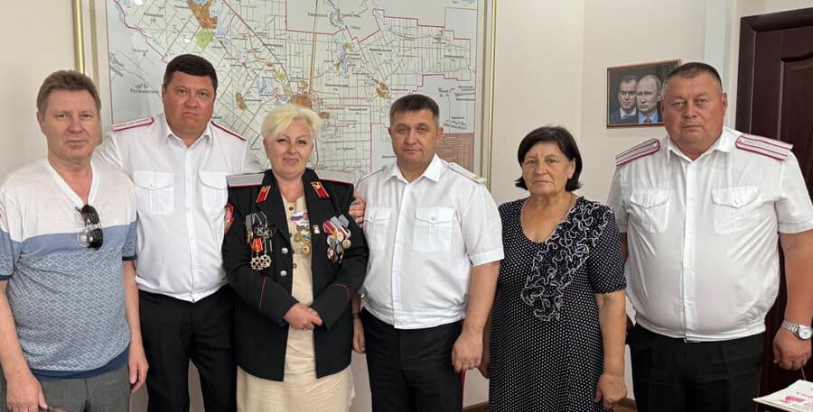 В.В. Ситникова организует сбор сведений о подвигах наших земляков, воюющих в зоне СВО, о погибших – для съёмок фильмов. Сама готовит публикации в газетах. Также стала инициатором подготовки документов для присвоения нашему земляку из хутора Незаймановского Попову Александру высокого звания Героя Российской Федерации. С такой инициативой она выступила ещё в прошедшем году, а затем на заседании оргкомитета по подготовке мероприятий к 80-летию Победы в Великой Отечественной войне, где также обсуждался вопрос о чествовании участников СВО – достойных продолжателей традиций, боевых заслуг наших отцов и дедов. А недавно по ходатайству Валентины Викторовны состоялся приём инициативной группы атаманом Кубанского казачьего войска, казачьим генералом А.И. Власовым – по вопросу присвоения погибшему в бою в зоне СВО казаку Попову Александру звания Героя России.