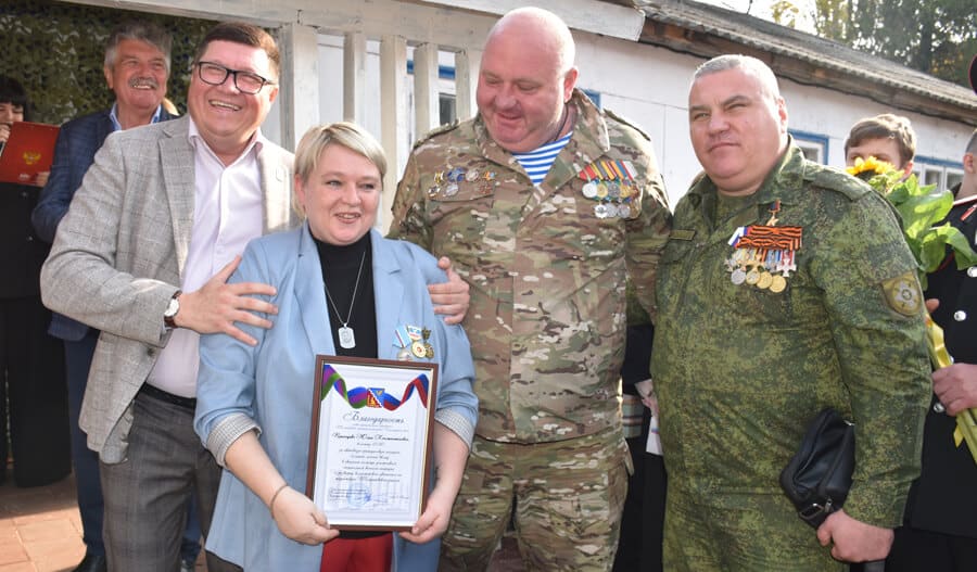 Затем состоялась церемония награждения группы активных добровольных помощников фронта медалями «Волонтер СВО», которая завершилась минутой молчания в память о погибших героях.